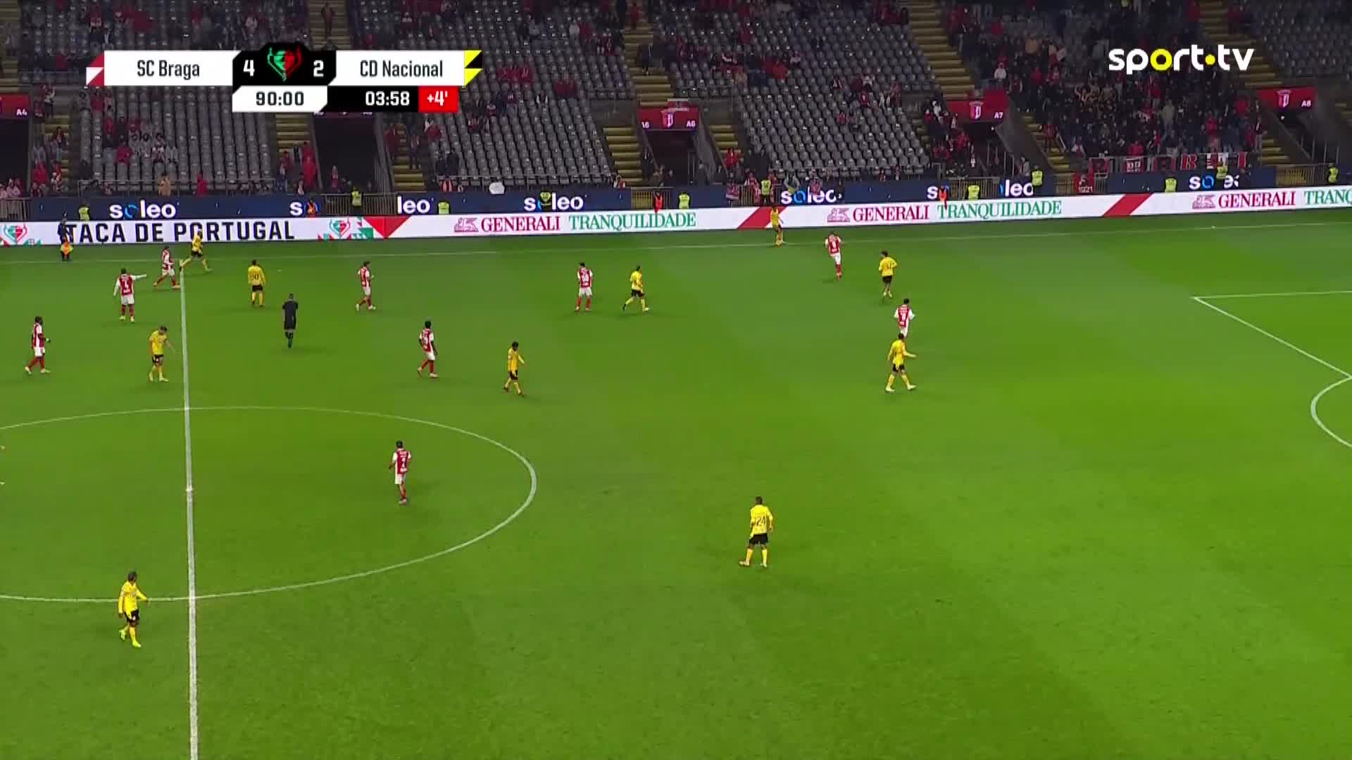 Apito final no Estádio Municipal de Braga! O Sporting de Braga recebeu e venceu o Nacional por 4-2, na quarta eliminatória da Taça de Portugal. Ricardo Horta (2), Lagerbielke e Victor Gómez marcaram os golos dos 'bracarenses', Miguel Baeza e Chuchu Ramírez apontaram os tentos dos 'insulares'.